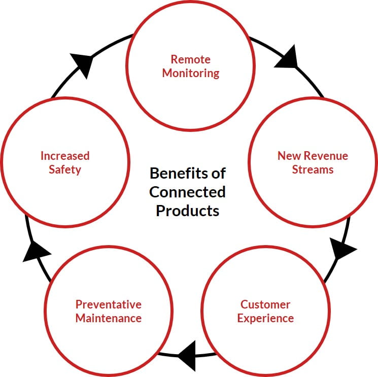 Both consumers and commercial end users responded in a Perficient study that the top benefits of connected products were improved efficiency, real-time monitoring, enhanced safety and security, and enhanced convenience.